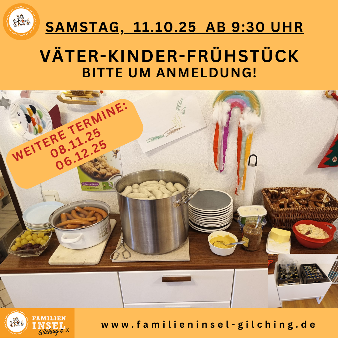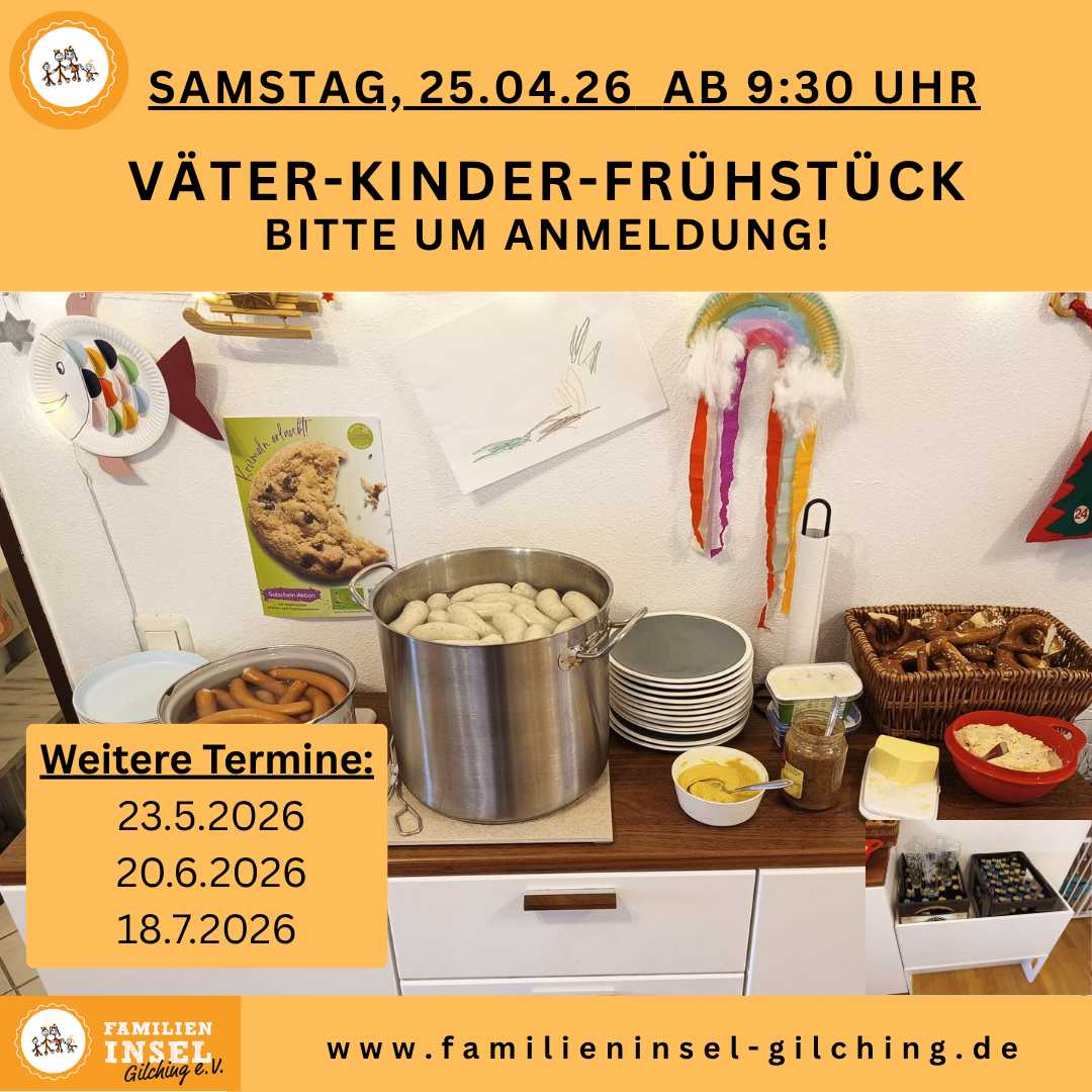 An diesen Samstagen treffen sich in der Familieninsel die Väter, um in gemütlicher Runde mit anderen Vätern und ihren Kindern zu frühstücken und zu spielen. (Bitte anmelden)