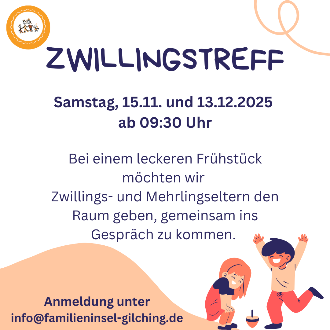 An diesem Samstag treffen sich Familien mit Zwillingen von 9:30 Uhr bis ca. 12:30 Uhr in der Familieninsel, um sich in gemütlicher Runde auszutauschen. (Bitte anmelden)