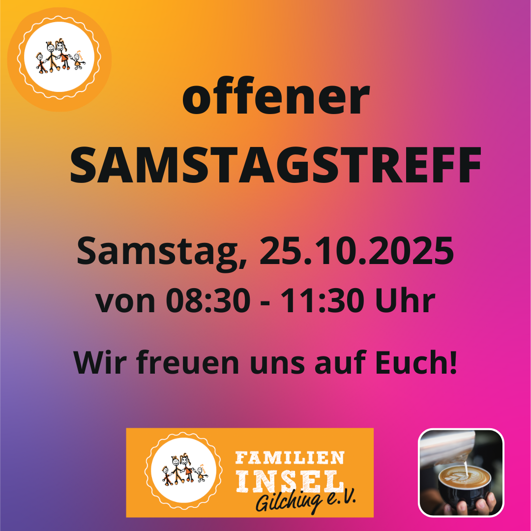 An diesem Samstag treffen sich alleinerziehende von 9:30 Uhr bis 12:30 Uhr in der Familieninsel, um sich in gemütlicher Runde auszutauschen. (Bitte anmelden)