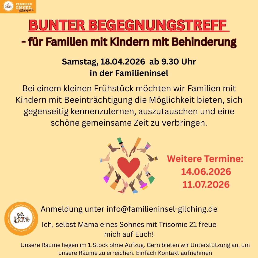 *Bunter Begegnungstreff am Samstag, 18.04.2026 ab 09:30 Uhr in der Familieninsel (Bitte anmelden). Weitere Termine: 14.06.26 und 11.07.26